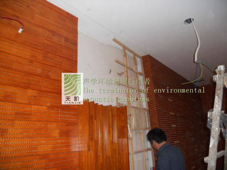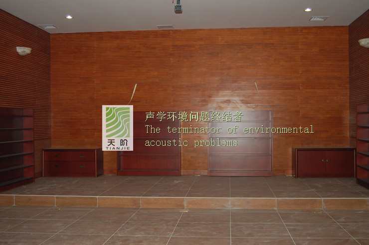 我司承接西南政法大學視聽室工程項目今日正式完工。我們提供專業的施工團隊與專業的吸音板和裝飾板,其中槽木吸音板100平方,孔木吸音板60平方,擴散體60平方。會議室整體風格采用中式風格,色調為溫暖明快的紅櫻桃,給人的感覺端莊典雅、高貴華麗,視覺效果富有沖擊力,聽覺效果也非常舒適,針對視聽室使用槽孔吸音板進行聲學處理是非常明智的選擇,擴散體風格的設計,起伏的曲線給人創造出輕松、明朗、親切的空間環境。