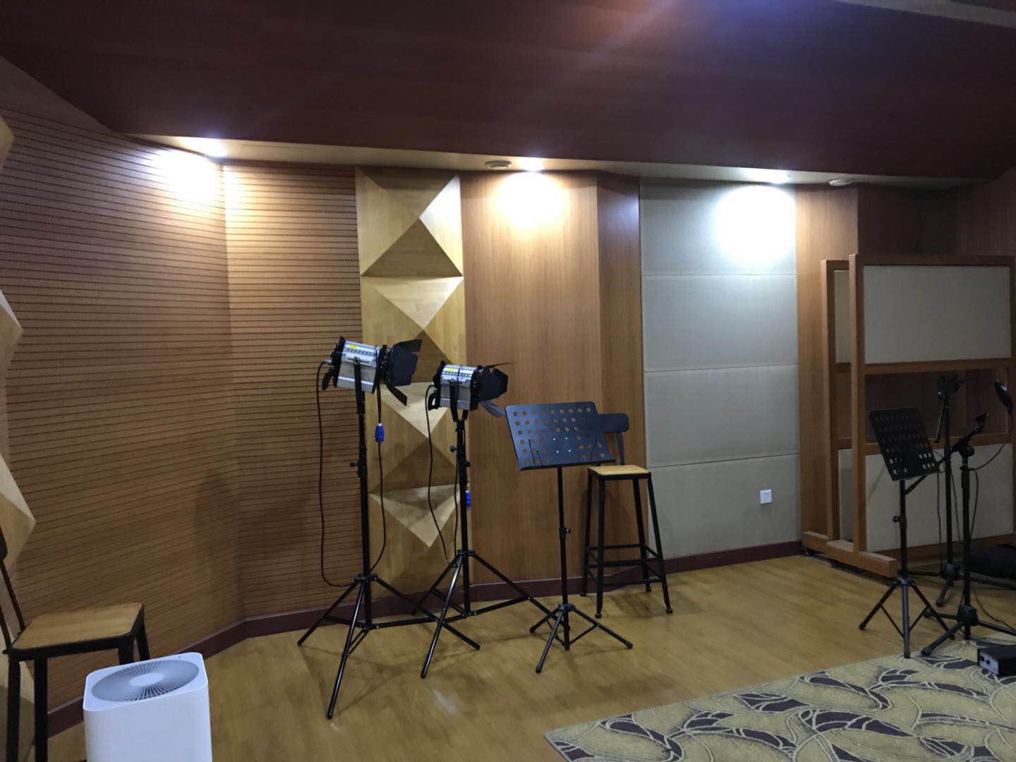 舞臺后面和舞臺對面墻,應安裝強吸音裝飾面;兩面側墻窗戶,可安裝厚窗簾;兩面側墻其它部分(包括窗戶之間),應做吸收低音的木結構(或面周墻壁做此種結構的木墻裙);地面應裝鋪木地板;安裝吸聲天花板;