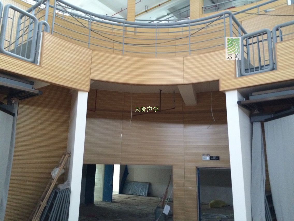 此項目采用的材料有:B1級防火吸音板8000方,飾面帶來了視覺上的美感,吸音板在聲學方面提倡了很好的聲學環境。