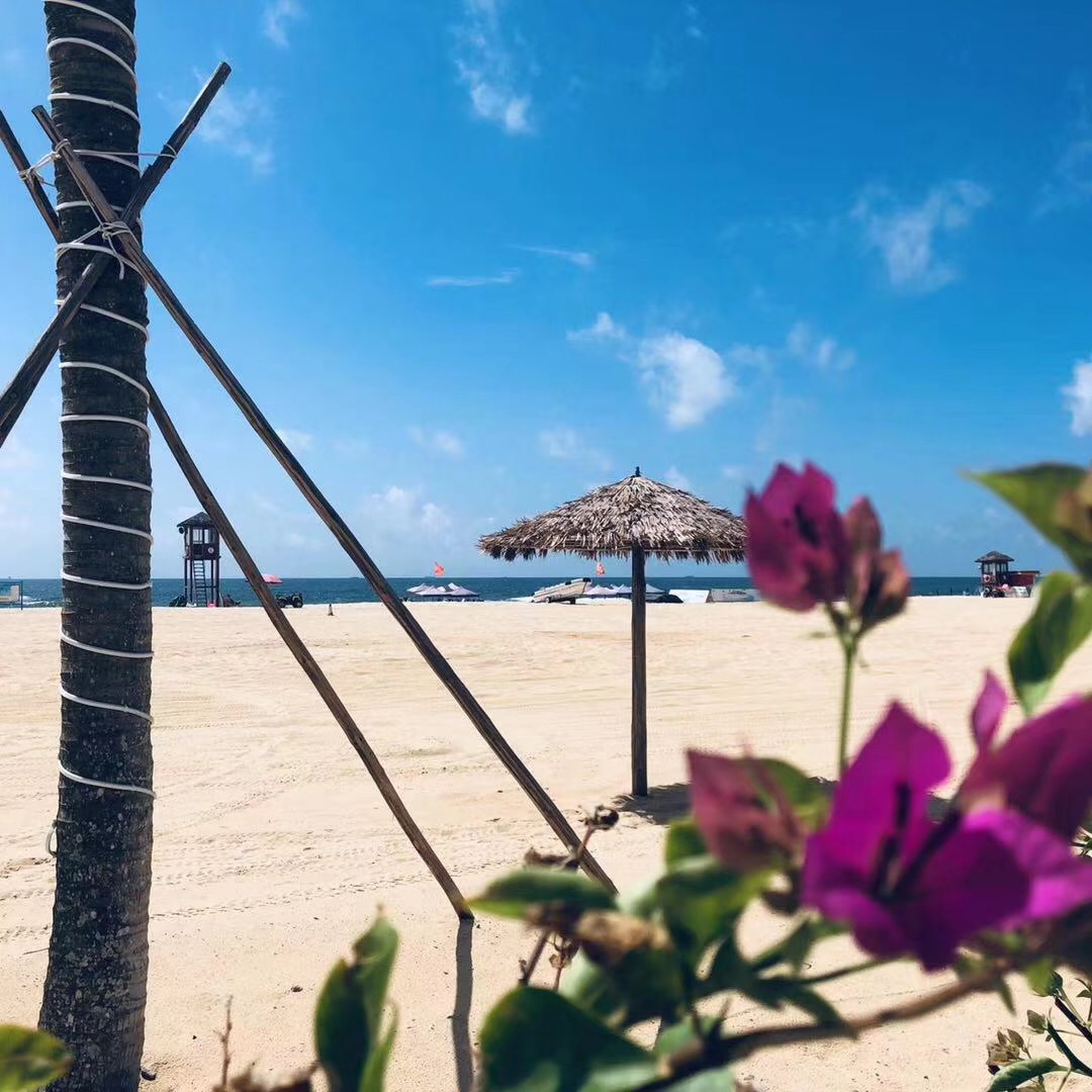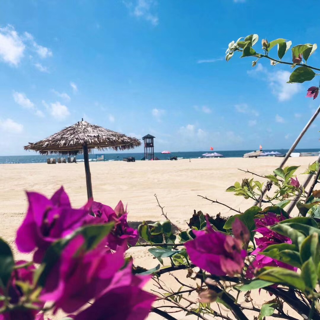 一到陽江,我們就喜歡上這個城市了。八月的陽江,幾乎將所有的柔情蜜意都揮灑在大角灣的沙灘上。在這里,天空和白云如此接近。