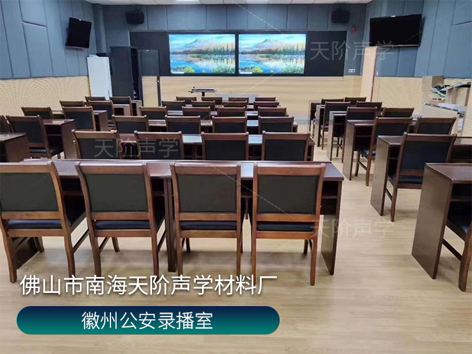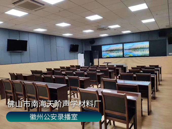 徽州公安錄播室 選用長條槽木吸音板與軟包吸音板搭配使用,吸音效果顯著。