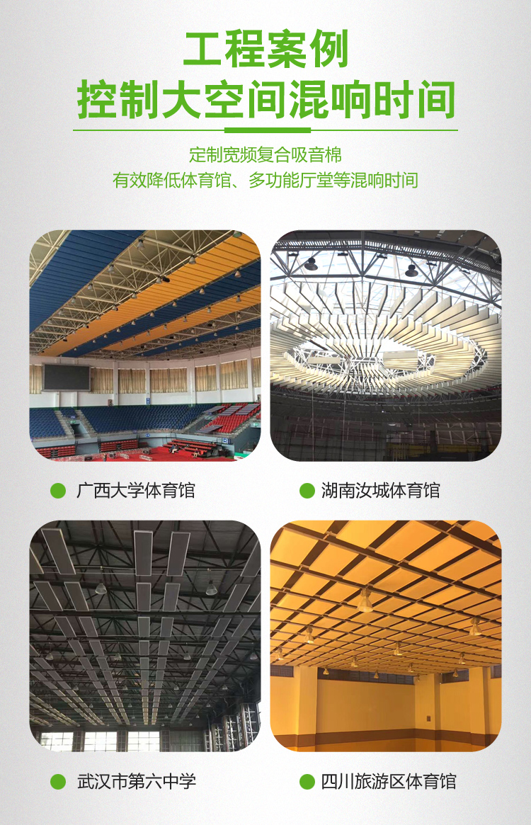 廣泛適用于室內體育館、噪音過大的工廠,也適用于廣播電臺、電視臺錄音室、演播室、學校、大劇院、圖書館、文化中心、禮堂、多功能廳、會議室及音樂廳等對音質要求較高