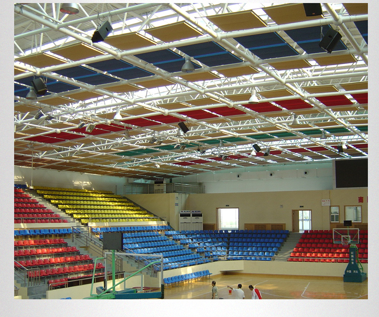 飾要求和聲源特性,可有板狀、方塊狀、柱體狀、圓錐狀和球體狀等多種形狀。其中板狀的結構最簡單,應用最普遍。空間吸聲體多用于室內體育館,其各式各樣的形狀、擺設方