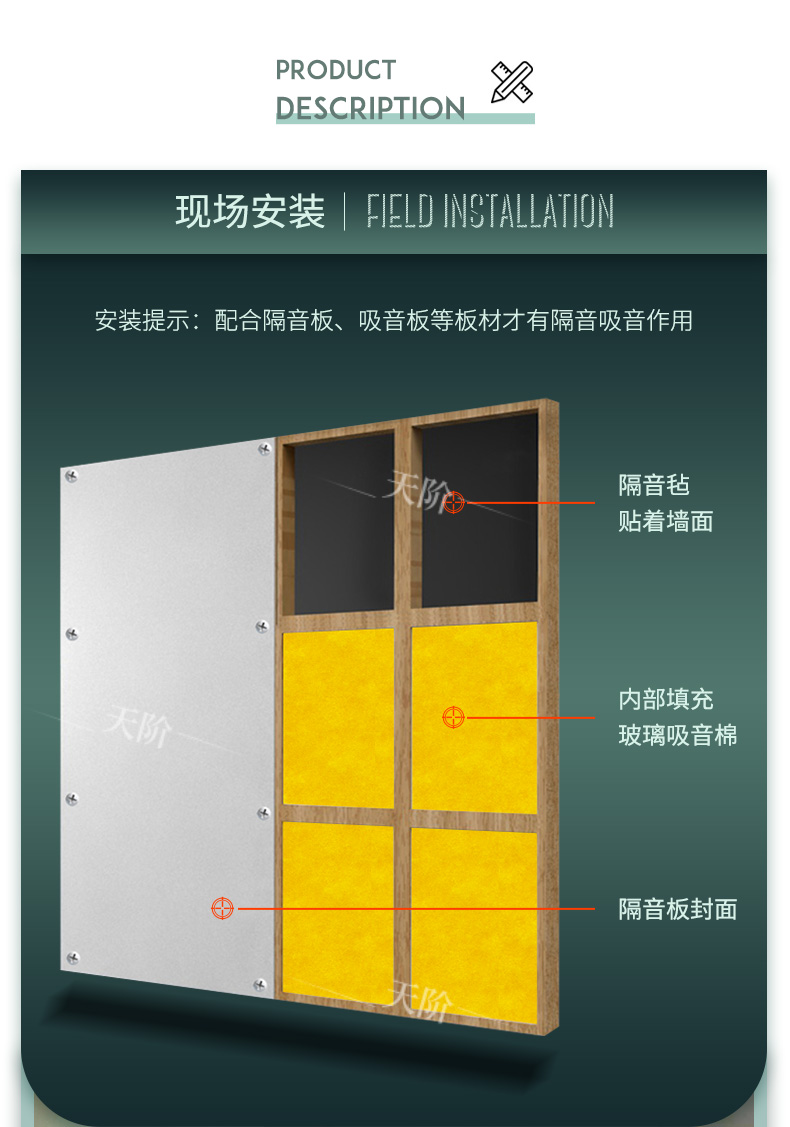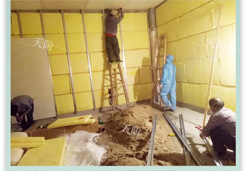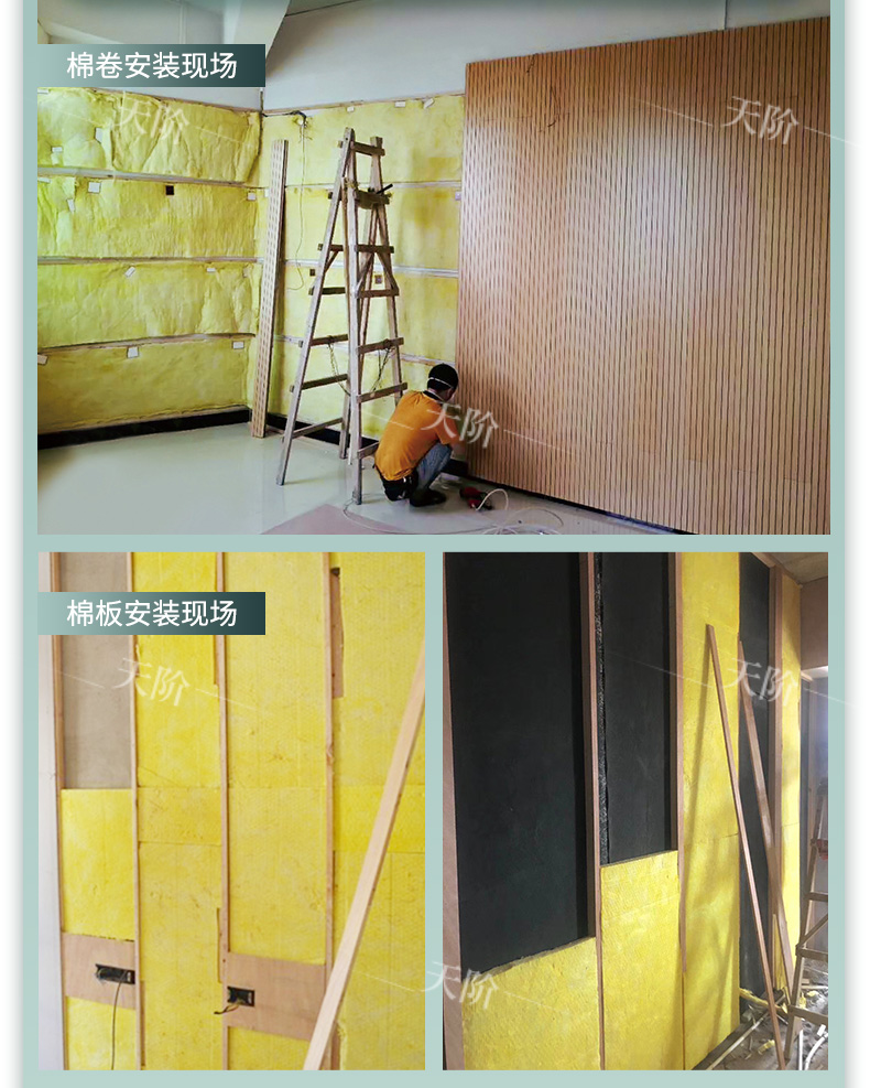 離心玻璃棉內(nèi)部纖維蓬松交錯,存在大量微小的孔隙,是典型的多孔性吸聲材料,具有良好的吸聲特性。離心玻璃棉可以制成墻板、天花板、空間吸聲體等,可以大量吸收房間內(nèi)的聲能,降低混響時間,減少室內(nèi)噪聲。