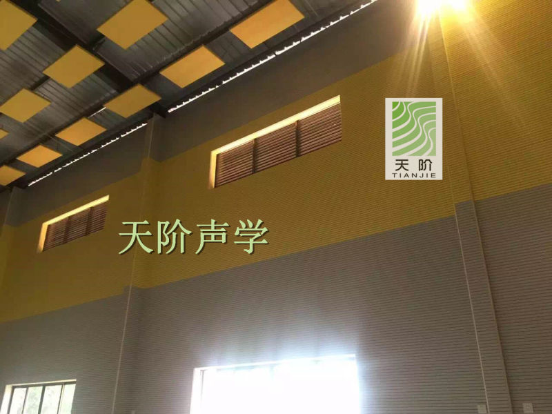 常德南源實驗學校需要建一所室內體育館。學校特地邀請了專業的聲學設計師進行設計,選用了平板空間吸聲體。空間吸聲體是一種懸掛在頂棚具有高效吸收性能的吸聲材料。空間吸聲體一般水平或者垂直吊掛。