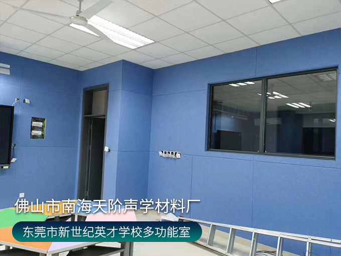 東莞市鳳崗鎮鳳崗新世紀英才學校錄播室項目,選用活力的藍色聚酯纖維吸音板,減少錄入回聲、雜音。