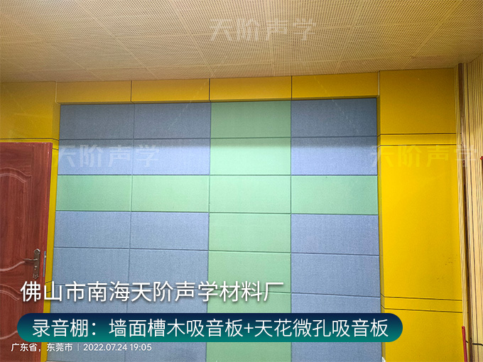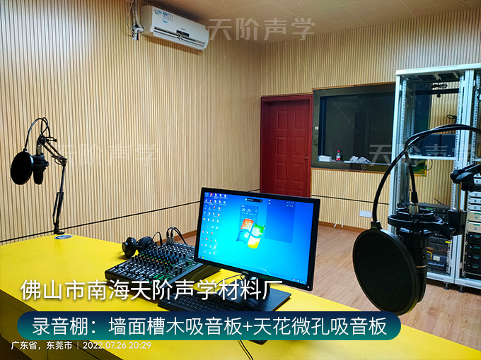 錄音棚:墻面槽木吸音板+天花微孔吸音板