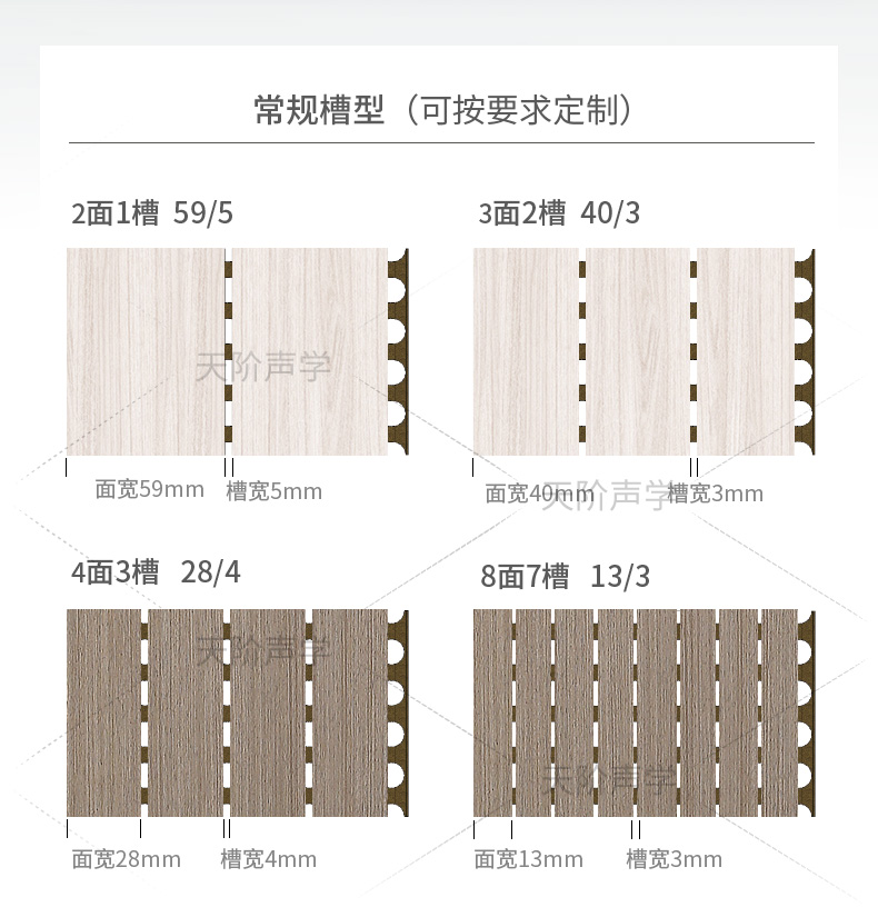 吸音板規格、厚度、基材和飾面選擇很多,詳情致電天階聲學。
