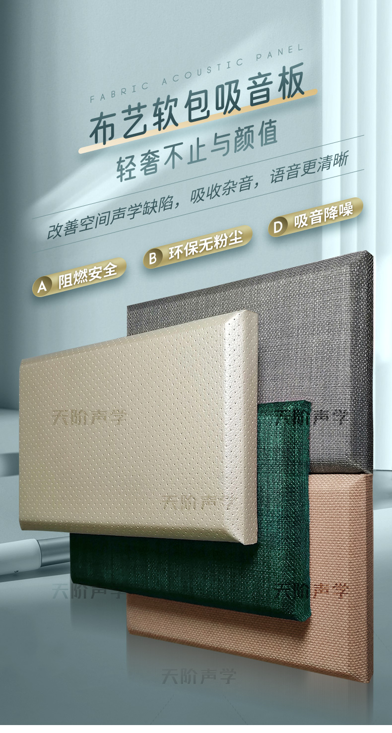 布藝吸聲板是由以吸音棉為基材,邊框固定成型后外包裹一層吸聲布而成的聲學產品。