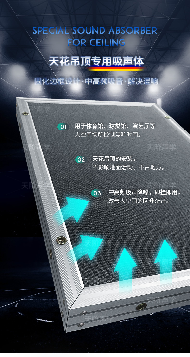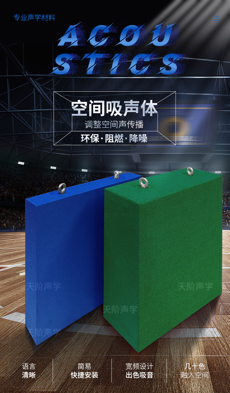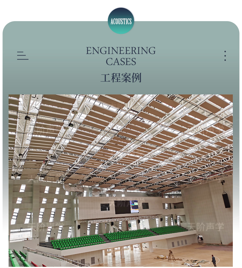 適用場所:體育館、籃球場、學校禮堂、會議室、報告廳、博物館、室內休閑場所等需要降噪的空間。