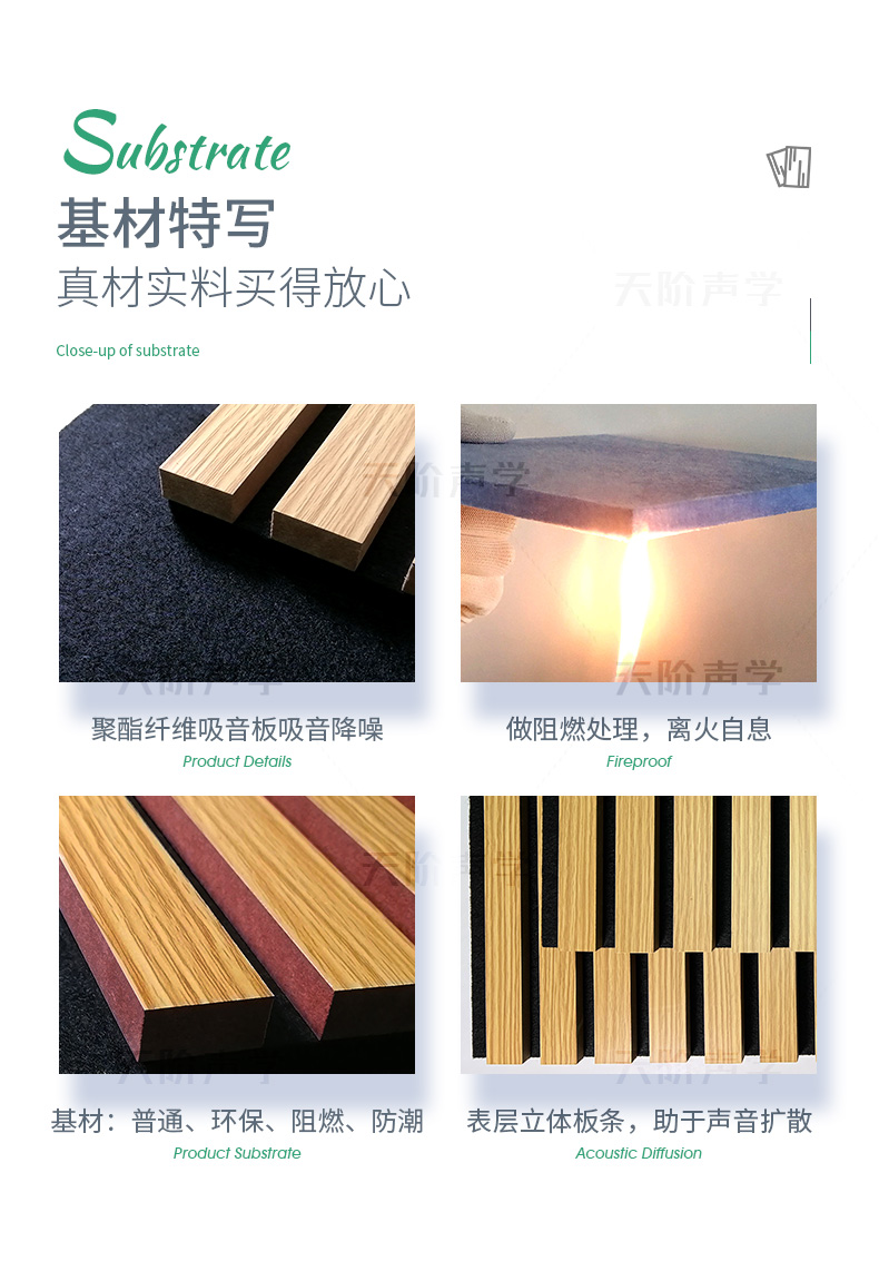 適用于多種場所:多種飾面,滿足不同風格家裝,店面裝修,辦公室,建筑墻面,廣告牌制作,音樂廳,歌劇院,錄音室等(內外墻,室內天花)。